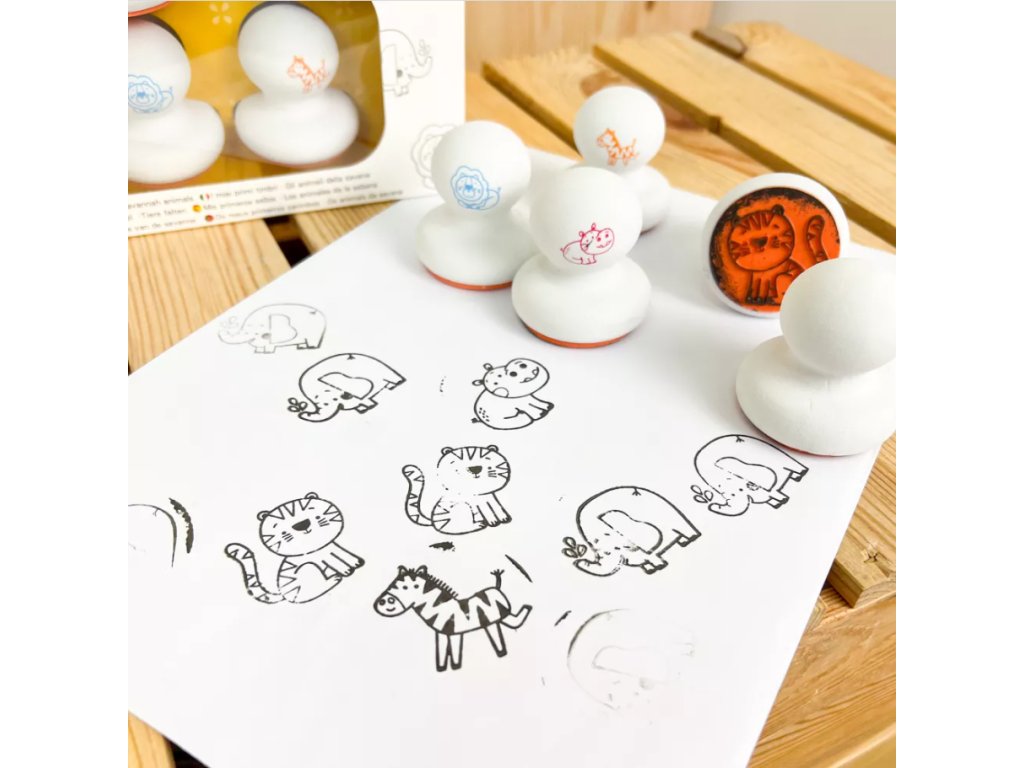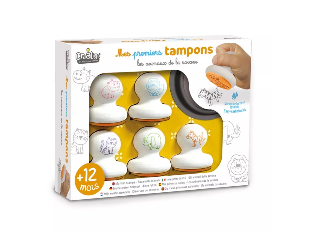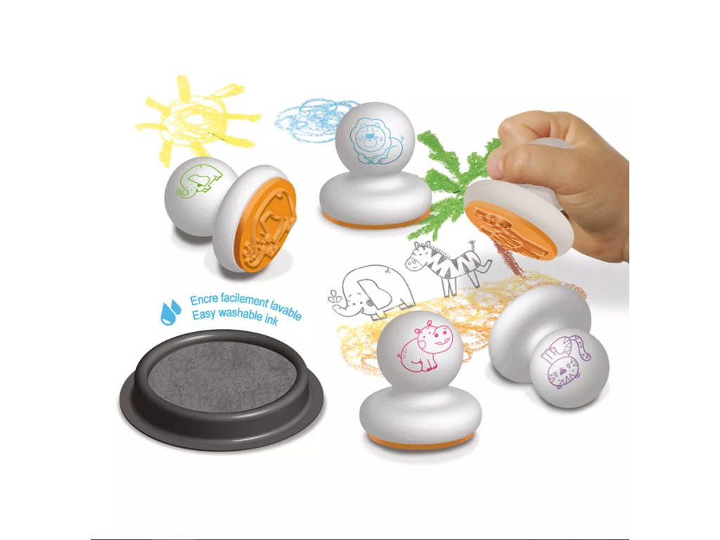 Ergonomicky tvarované pečiatky pre najmenšíchVeľké okrúhle pečiatky pre deti so zvieratkami zo savany od francúzskej značky Crea Lign sú ergonomicky tvarované. Dobre sa držia malým ručičkám, a preto sú vhodné už pre deti od 12 mesiacov. V balení nájdete 5 veľkých pečiatok so zvieratkami a jeden veľký pečiatkovací vankúšik s čiernou farbou. Nemusíte sa báť ani špiny. Pečiatkovacia farba sa dá jednoducho umyť z ručičiek, vyprať z oblečenia a je úplne bezpečná.Skvelé na rozvoj úchopu a jemnej motorikyOkrúhle pečiatky pre najmenšie deti podporujú rozvoj rôznych zručností a kreativity. Produkt je vysoko kvalitný a bezpečný, rovnako ako všetky ostatné výrobky francúzskej značky Crea Lign. Jej cieľom je vyvíjať kreatívne potreby a hry, ktoré podporujú rozvoj deti a umožňujú každému nájsť to, čo ho baví.