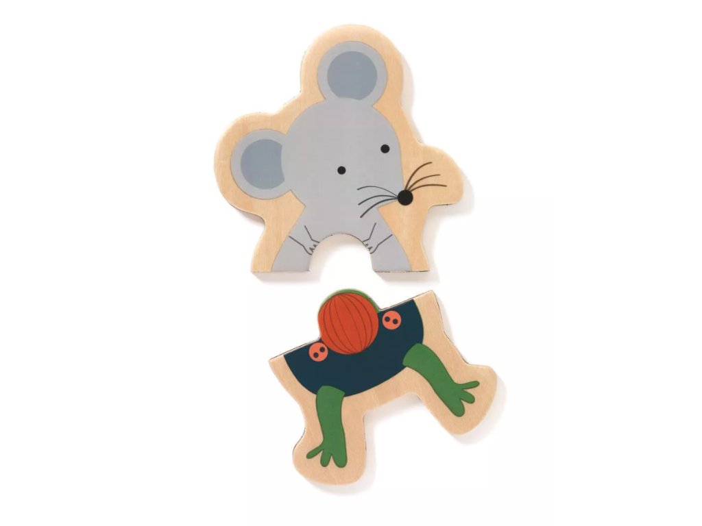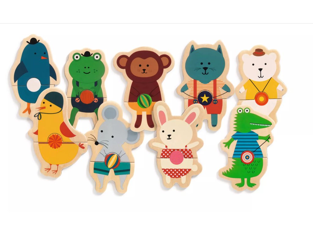 DJECO Drevené puzzle magnetky zvieratká s loptičkami