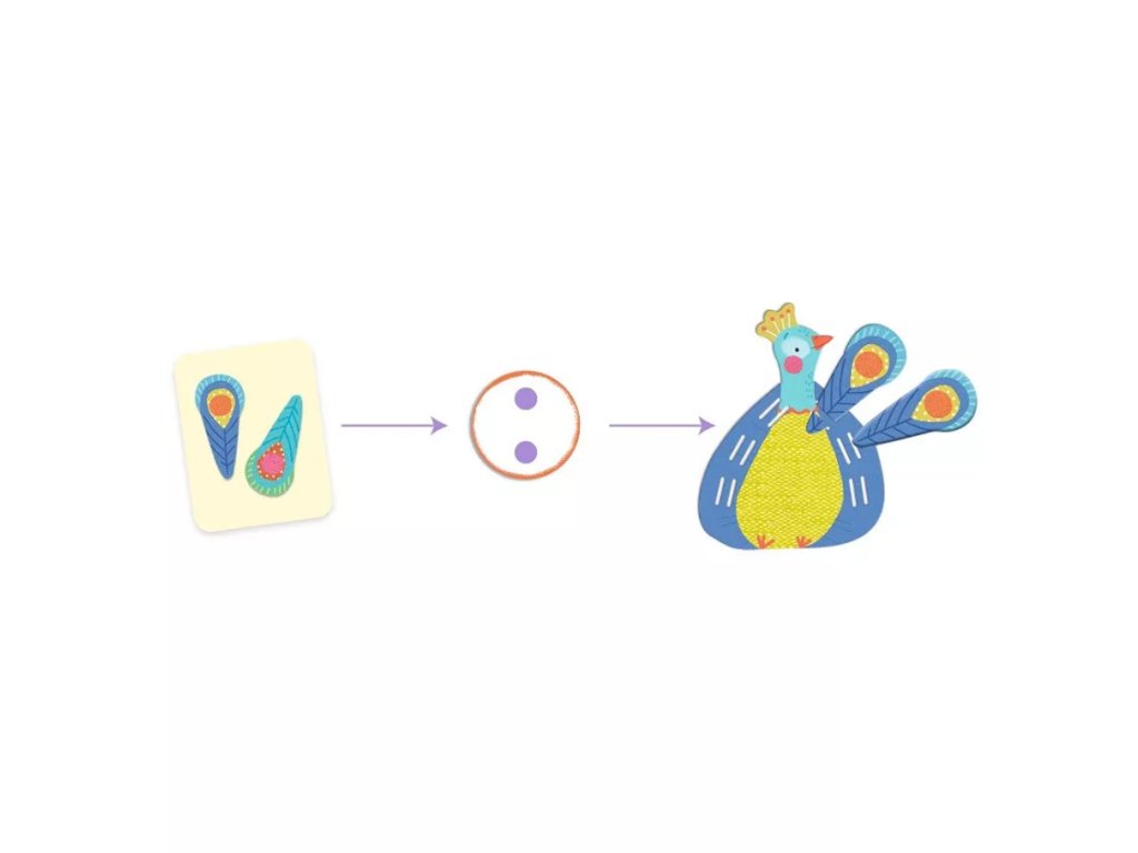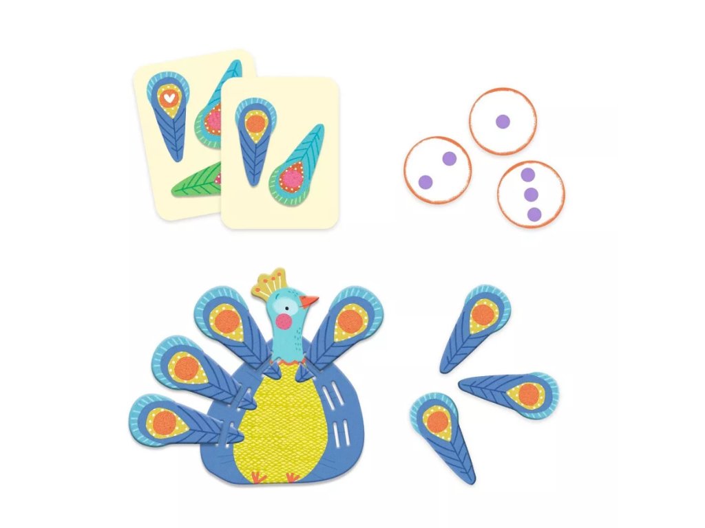 Keď chceš získať pierka, musíš spočítať pávy na karte so zadaním a ukázať na kartičku so správnou odpoveďou. Kartičky sú obojstranné, s numerickým a názorným vyjadrením počtu. Hra má dva varianty: „edukačný“, ktorý oboznamuje s počítaním ako takým a „postrehový“ pre 2 hráčov. Dizajn je prispôsobený pre vekovú kategóriu od 2,5 rokov. Materiál je z plastu, pre dlhšiu životnosť hry. Hra patrí do kolekcie edukačných hier Eduludo.