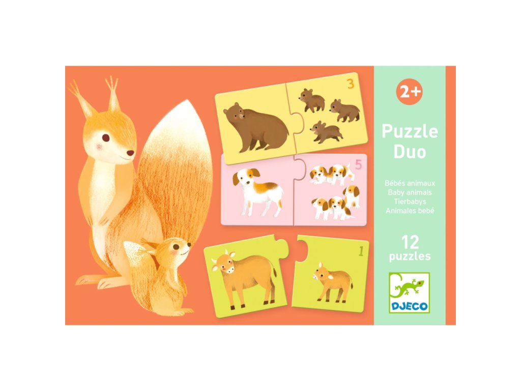 DJECO Puzzle duo: Mláďatá zvierat, 12 puzzle (24 dielov)