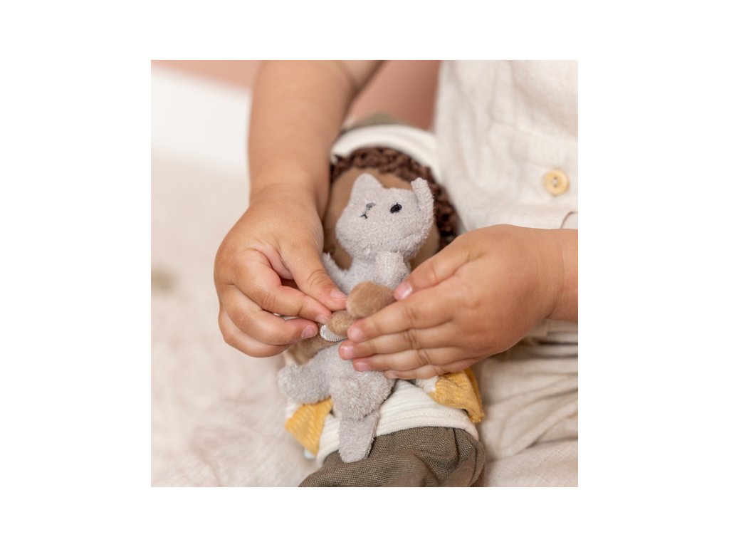 V náručí drží plyšovú mačičku, bez ktorej nedá ani krok! Bábika je vhodná na hranie aj maznanie a bude sa s ňou aj krásne zaspávať!