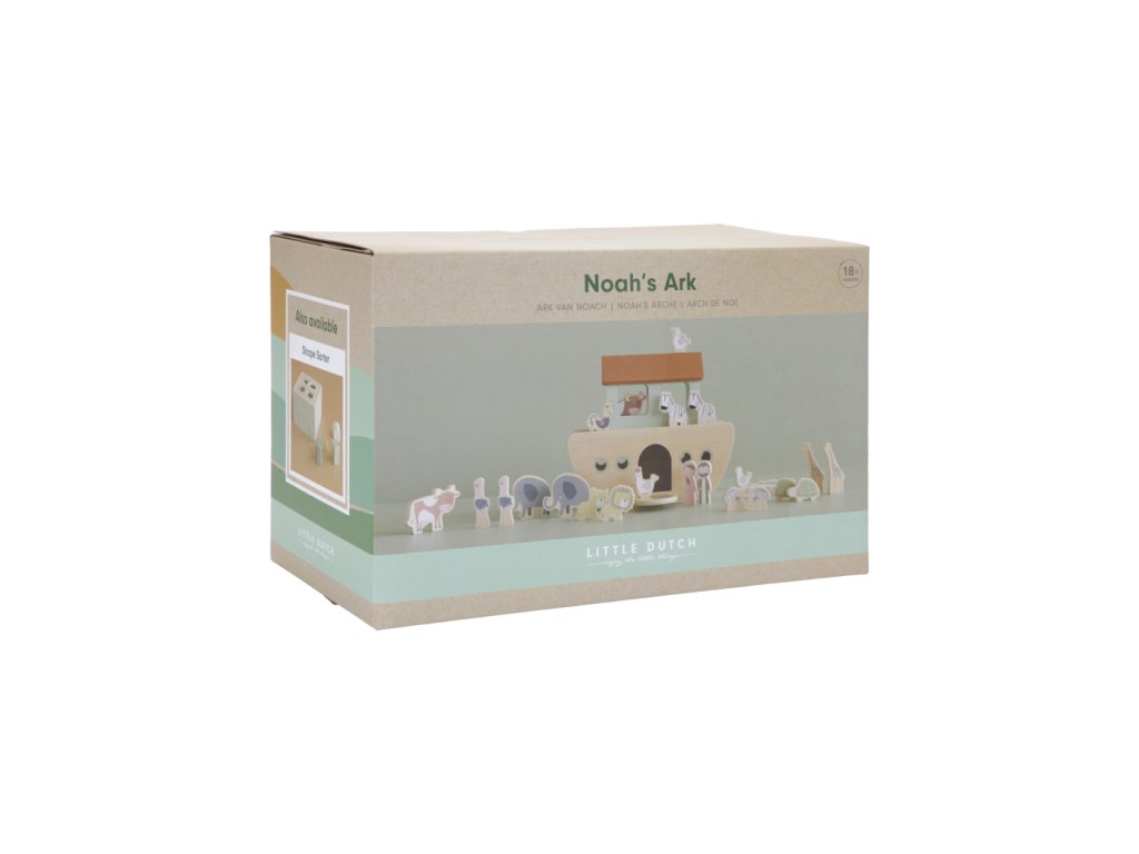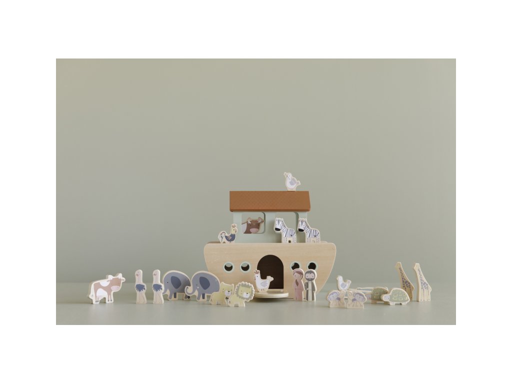 Táto 25-dielna sada obsahuje archu s dverami, palubu, ktorú možno zdvihnúť a priviesť všetky zvieratá na palubu. Noah vezme svoju ženu a veľkú skupinu zvierat na cestu cez oceán: 2 levy, 2 slony, 2 zebry, 2 opice, 2 holuby, 2 krokodíly, 2 korytnačky, 2 žirafy, 2 pštrosy, 2 kravy, kurča a kohúta. Táto sada Noemovej archy podporuje hranie rolí, zvyšuje predstavivosť a slovnú zásobu, zatiaľ čo sa vaše dieťa učí tento klasický príbeh.