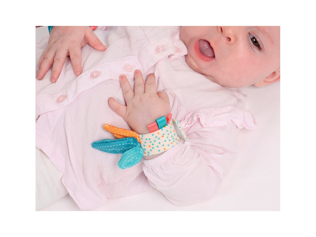 Hrkálky s veselými tvárami pandy podnecujú rozvoj sluchu, zraku a hmatu dieťaťa. Hrkálky sa ľahko pripevnia s pomocou suchého zipsu dieťaťu na zápästie a navlečú na nožičky. Dieťa sa otáča za zvukom a sleduje výrazné farby hračky. Rôznorodé textúry na skúmanie pomáhajú rozvoju hmatu.