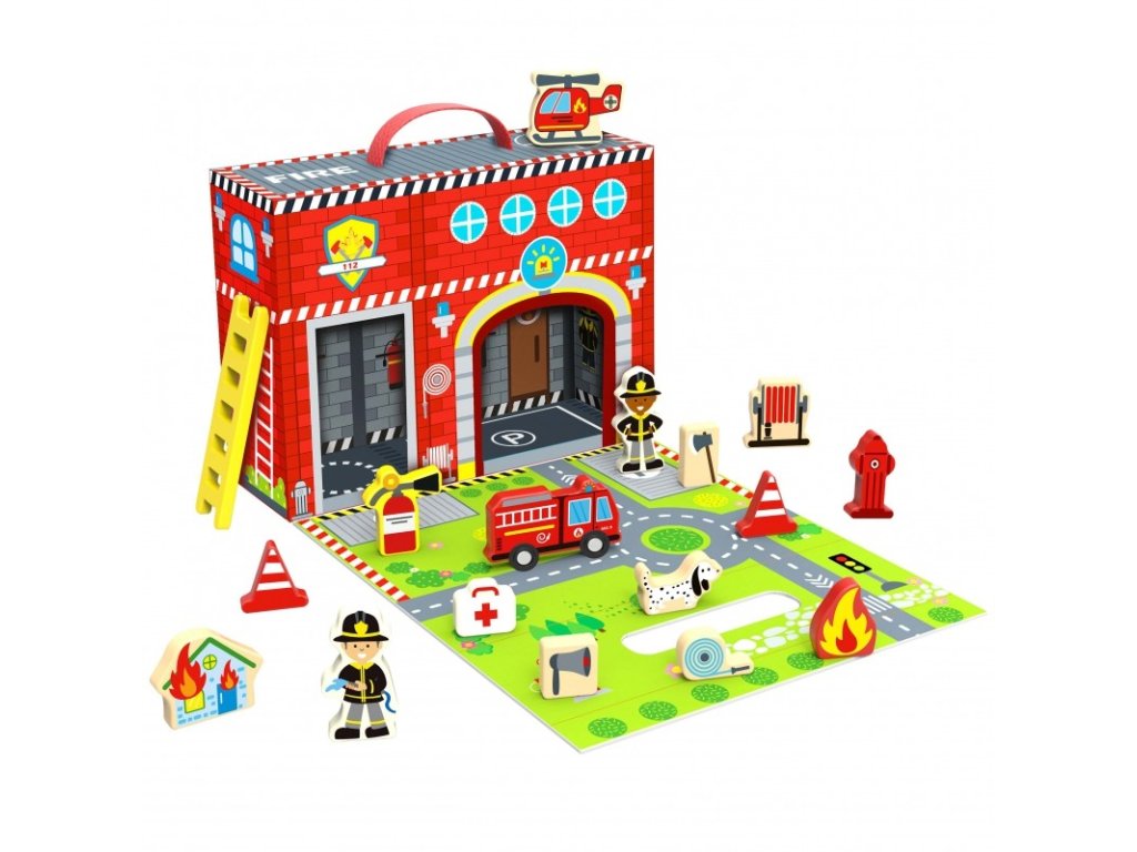 TOOKY TOY Požiarná stanica v kufríku + figurky