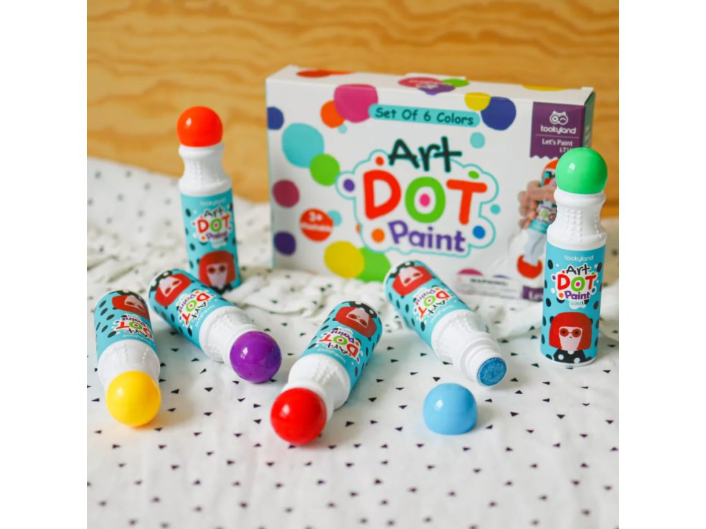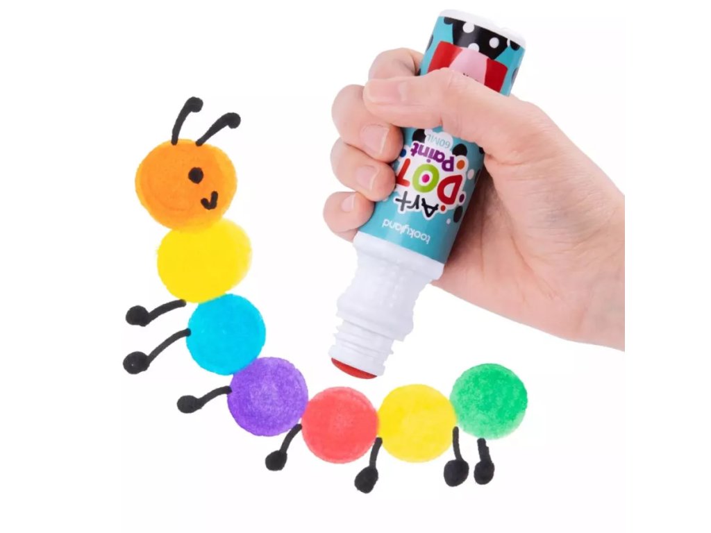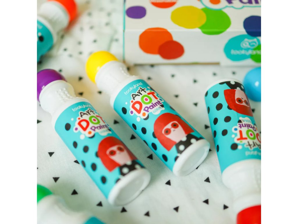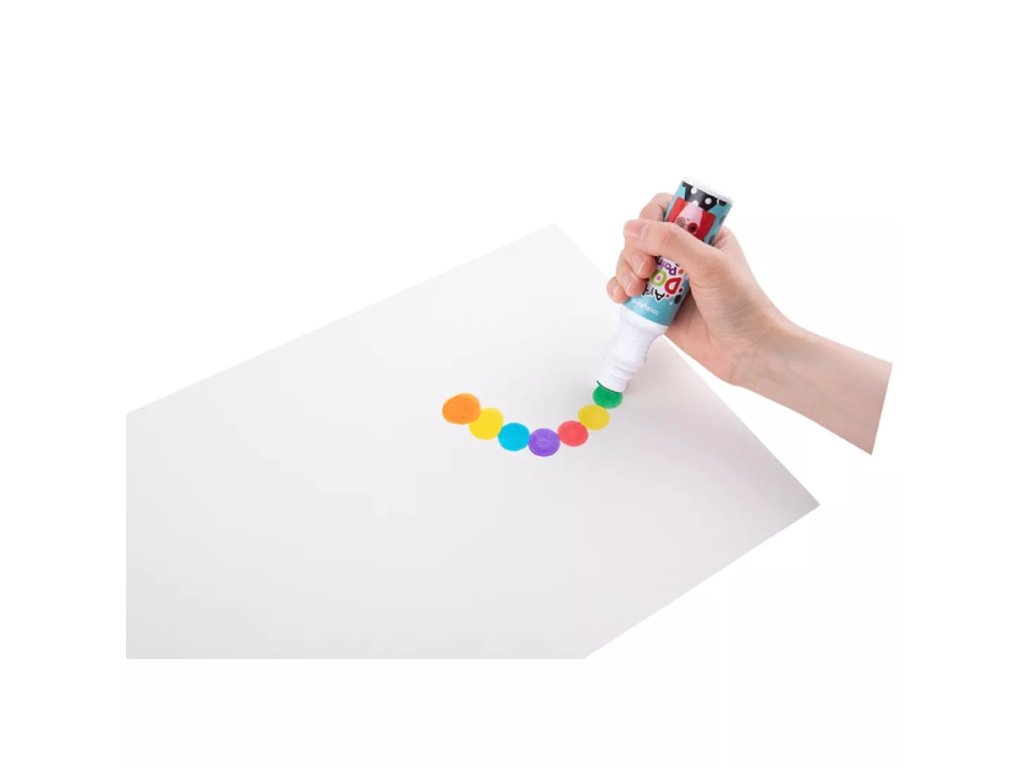 Farby v tube s penovým aplikátorom sú skvelé na bodkovanie, tzv. Dot Painting pre najmenších. Plochým penovým hrotom môžu deti tlačiť na papier koľko chcú. Priloží tubu na papier, zatlačí a jednofarebná bodka je na svete. Do tuby už nemusíte pridávať ani vodu, všetko je pripravené na bodkovanie.